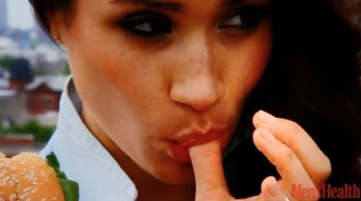 Las escenas que verás las grabó Meghan en el 2013 para la revista masculina Men´s Health y aparece en una faceta muy sexy, en una especie de parrilla, disfrutando de una suculenta hamburguesa, que devora de una manera sugerente.
