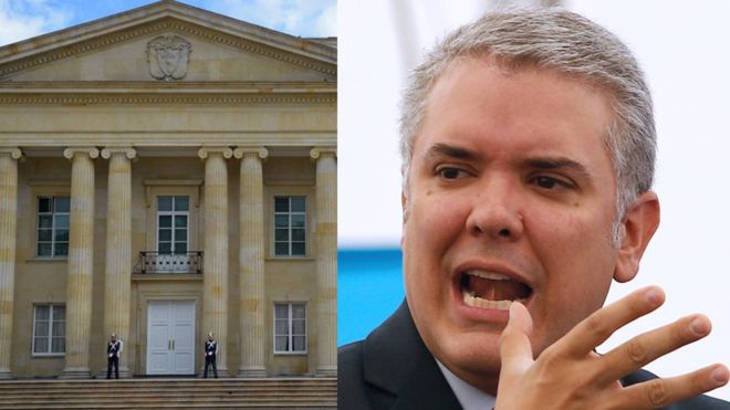 Un grupo de colombianos protestó ante la sede de la Unesco en París contra las políticas del presidente colombiano antes de su llegada a...