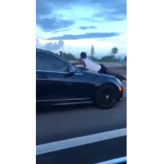 El vídeo deja ver a un hombre montado en el capó de un auto que se desplazaba a alta velocidad por una autopista cerca de Miami (Florida, EE.UU.). Daniel Midah, grabó la escena al pasar en su vehículo por el carril de al lado.