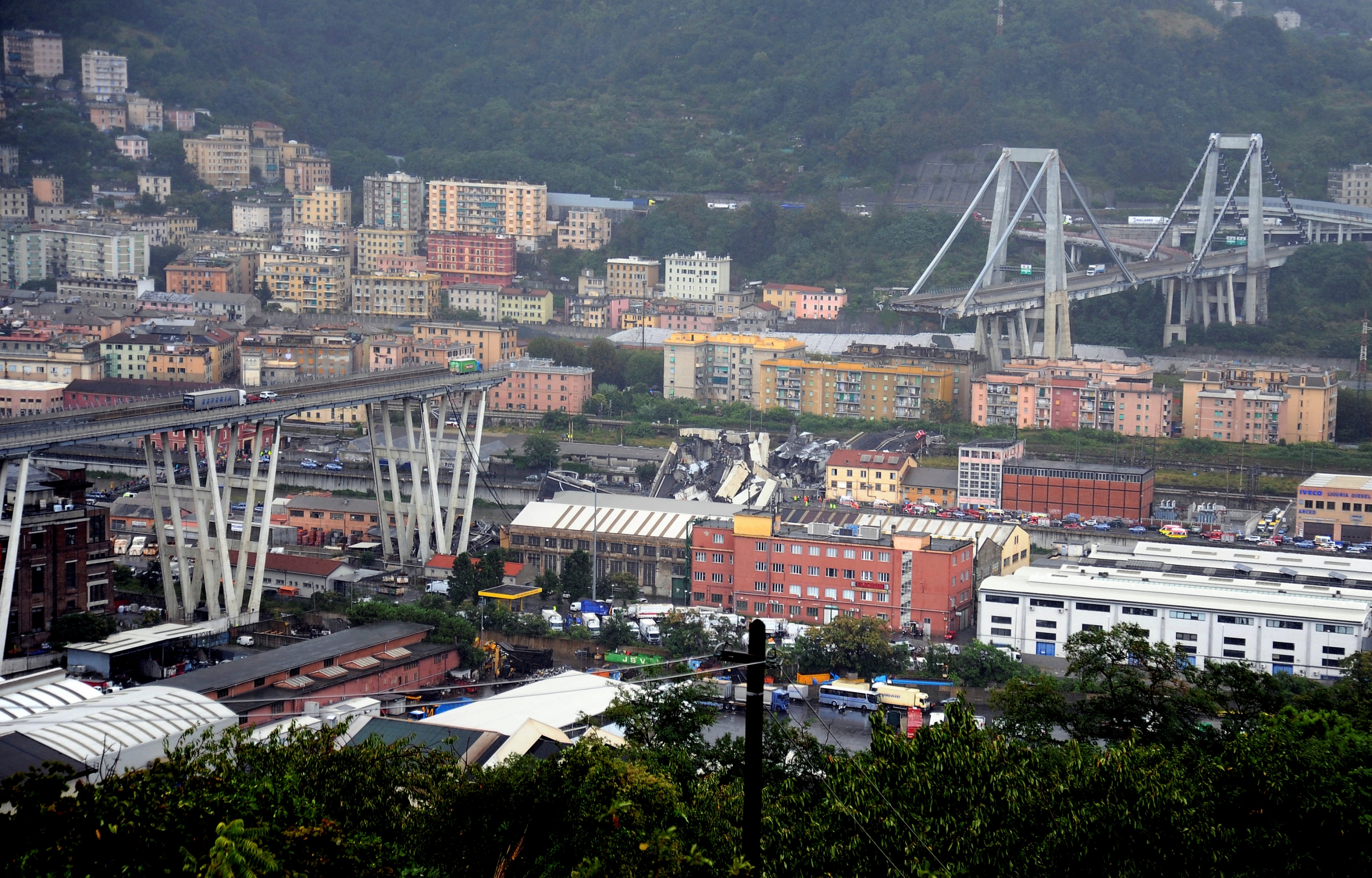 La sección colapsada del puente de la ciudad de Génova pasa por encima de una zona densamente poblada. Un viaducto de una importante autopista...